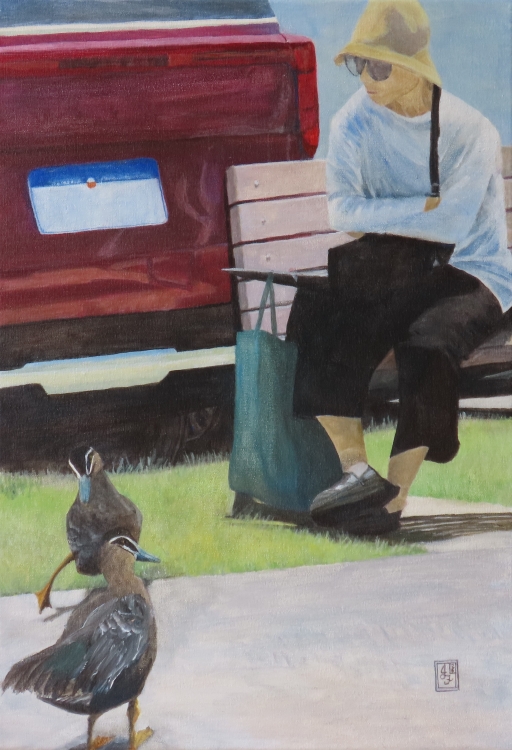 Sometimes I find myself folding my arms like this too. These black ducks are set in a small park above the underground railway, in Subiaco. |