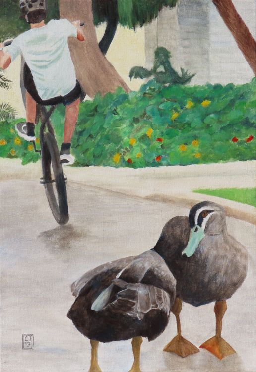 Ducks and cyclist |